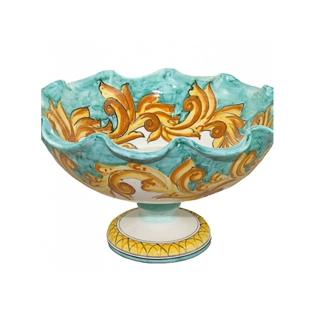 Rúmina verde ascendente de línea barroca- Pieza central en cerámica Vietri pintada a mano.