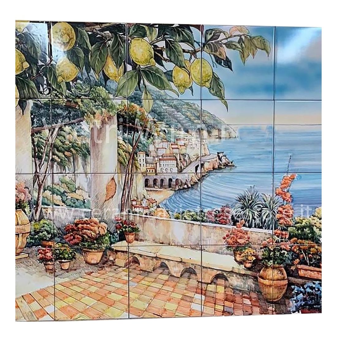Panel de pared -Panorama- en ceramica vietrese pintado a mano.