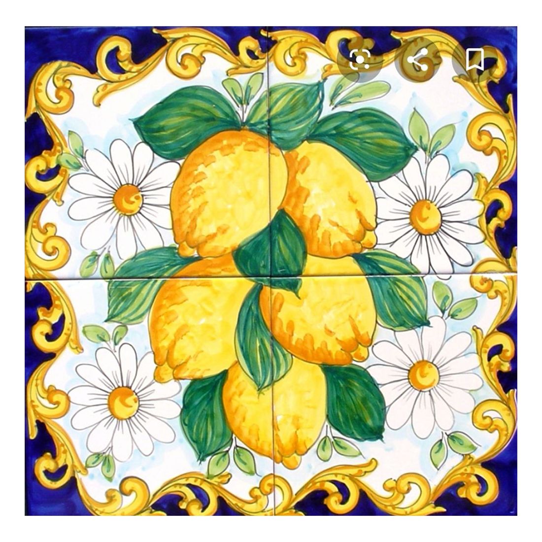 Panel de pared -barroco y limones- en ceramica vietrese pintado a mano.