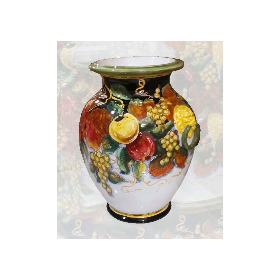 Jarrón paraguas borde liso decoración de frutas de fondo blanco, en cerámica Vietri pintada a mano.