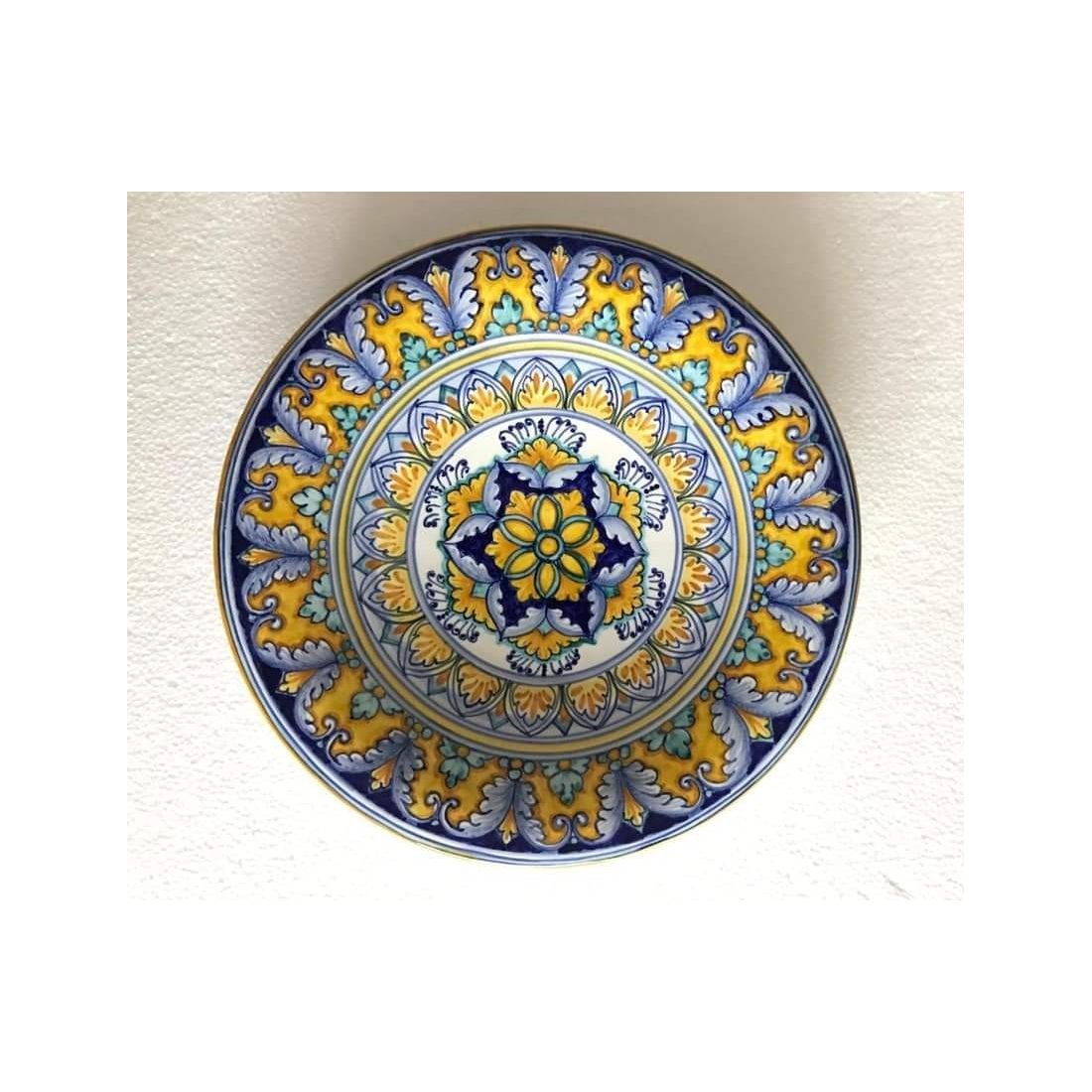 Descubre el encanto de la cerámica vietresa pintada a mano con este elegante plato mural artístico, elaborado artesanalmente en Vietri sul Mare.