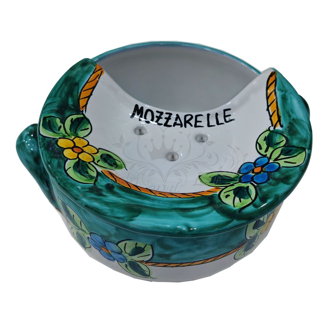 Sponzapane Porta Mozzarella decoración floral fondo verde claro - Cerámica Vietri...