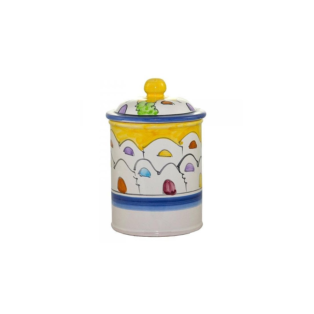 La línea de jarras alberga fondo amarillo. Cerámica Vietri pintada a mano.