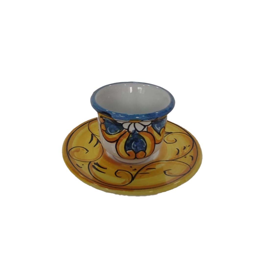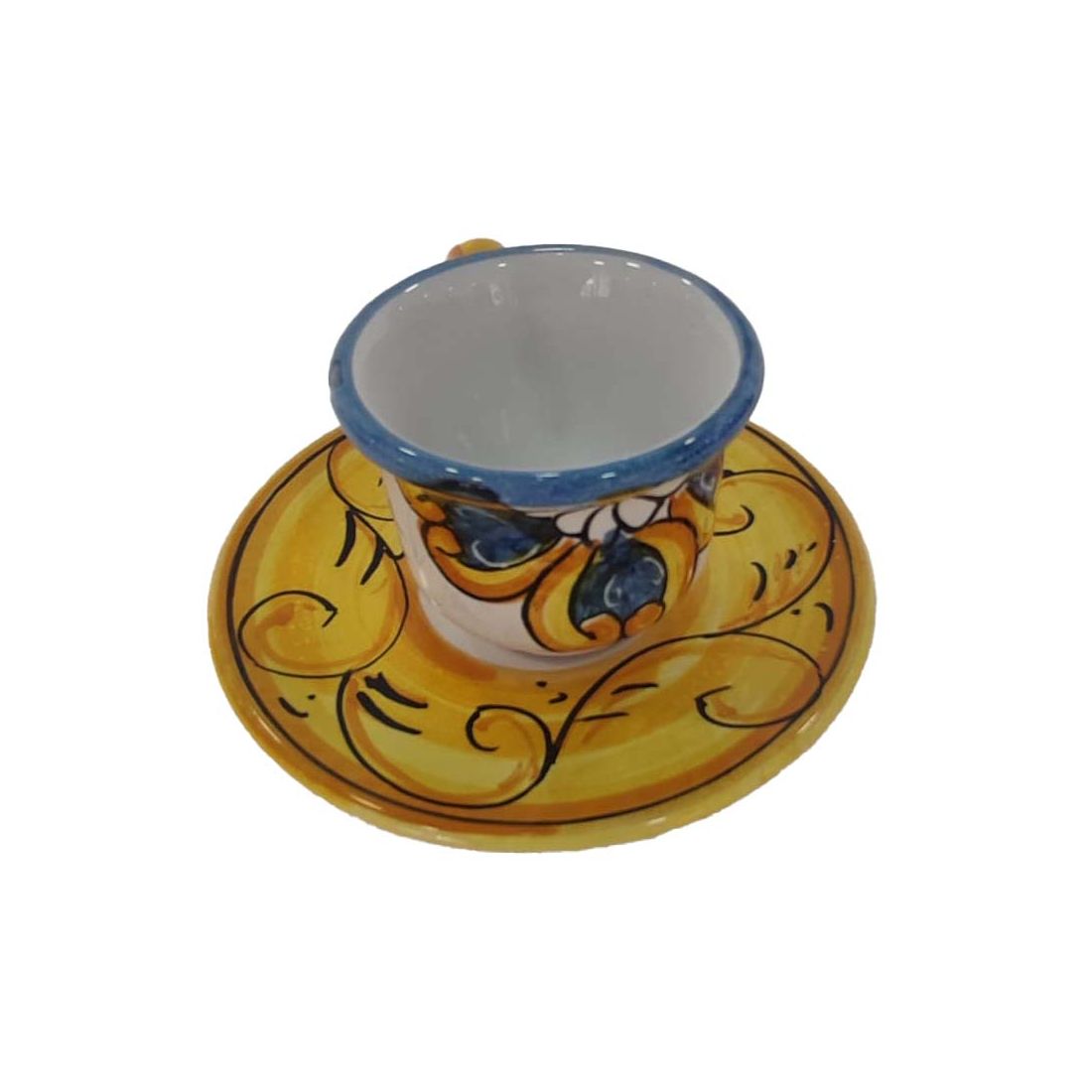 Juego de 6 tazas con bandeja, platillos y azucarero en cerámica de Vietri, pintado a mano, elegancia y arte artesanal italiano.