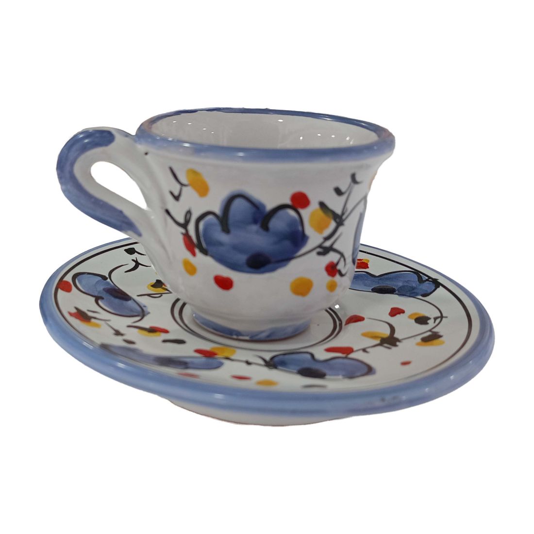 Taza con platito en cerámica de Vietri, pintada a mano, elegancia y arte artesanal italiano.