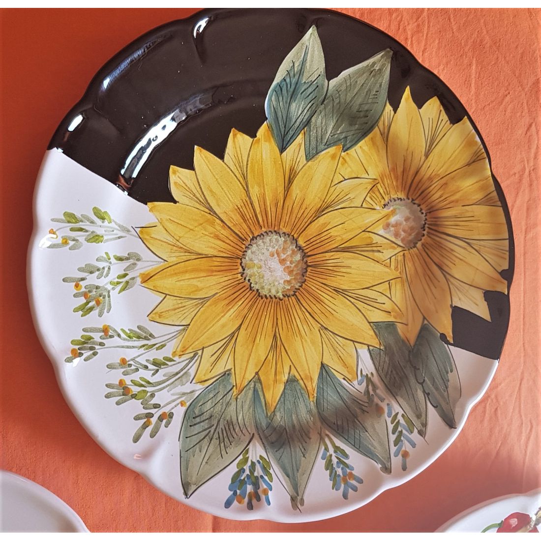 Plato Decoración de girasoles de primera línea. Cerámica Vietri. Fondos disponibles, tops, fruta / postre o plato plato