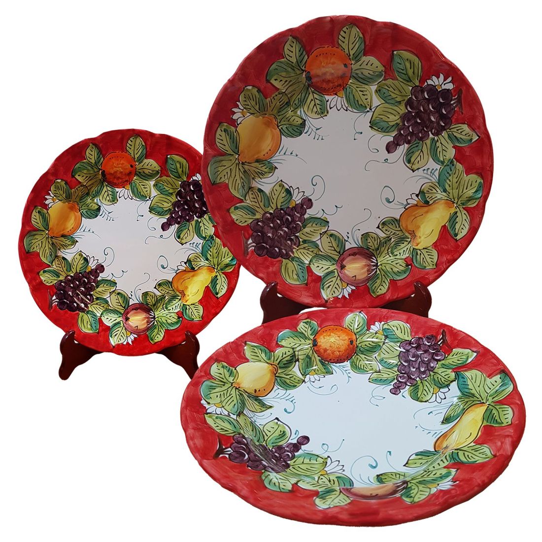Tris Platos en ceramica vietrese línea Fruttina - Fondo y fruta