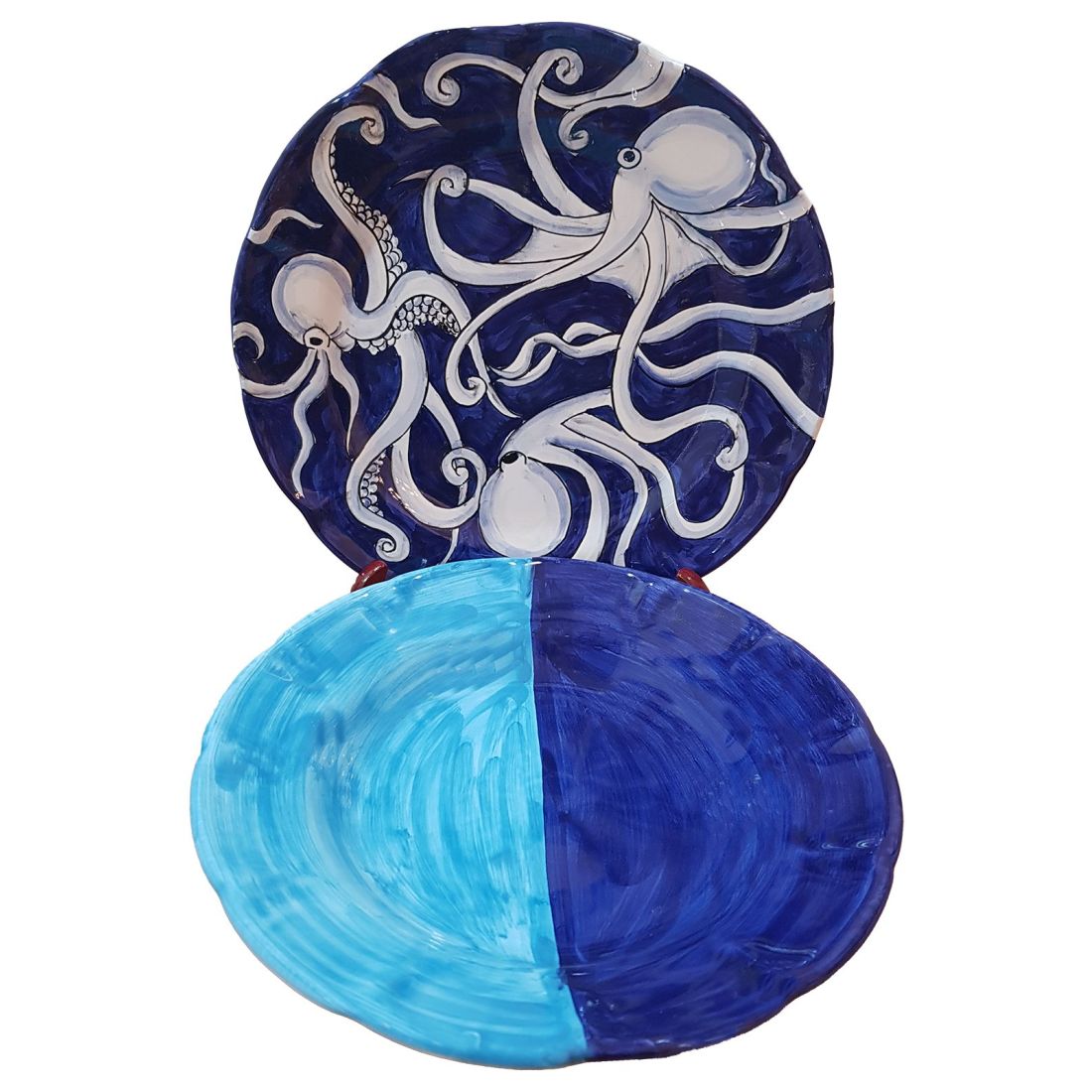 Antipastiera. Cena Fría. 8 piezas. Línea Pesci. Cerámica de Vietri pintada a mano.