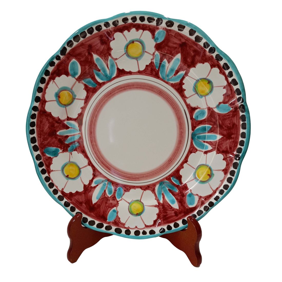 Ensaladera de línea festoneada borde rojo primaveral. Cerámica Vietri pintada a mano.