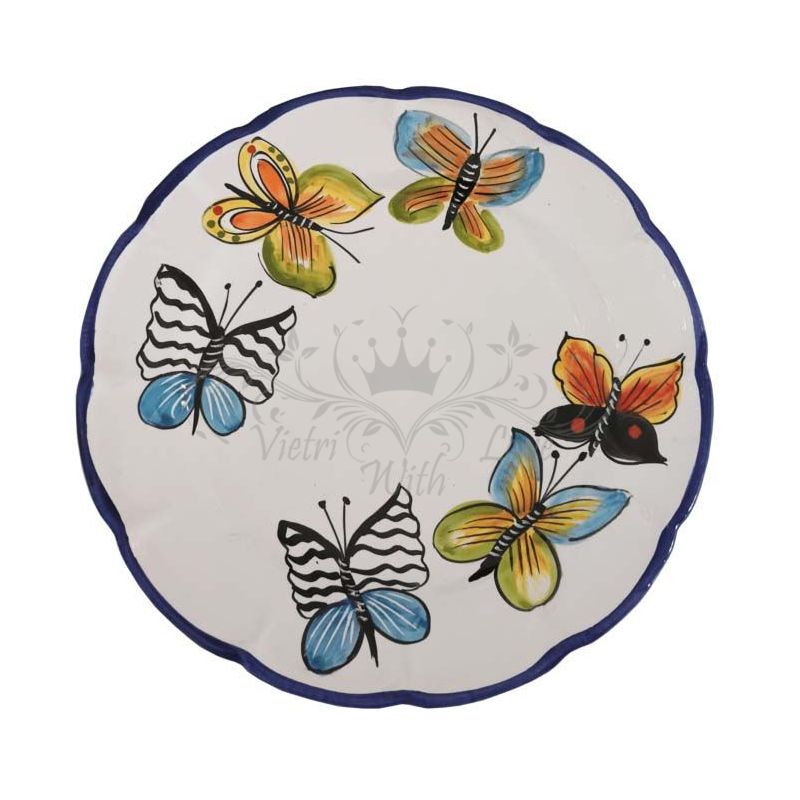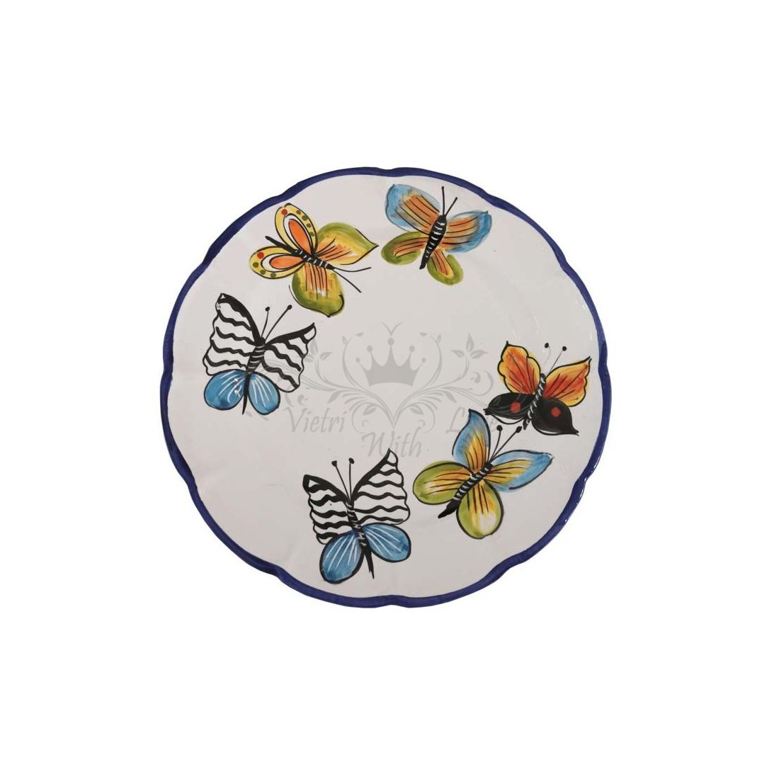 Plato con temática de mariposas. Cerámica de Vietri. Disponible como plato hondo, plato llano, plato de postre o plato inferior.