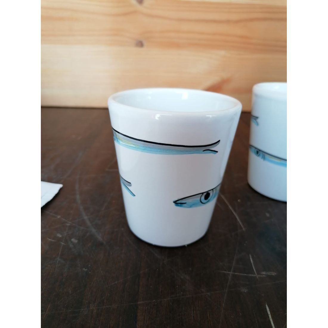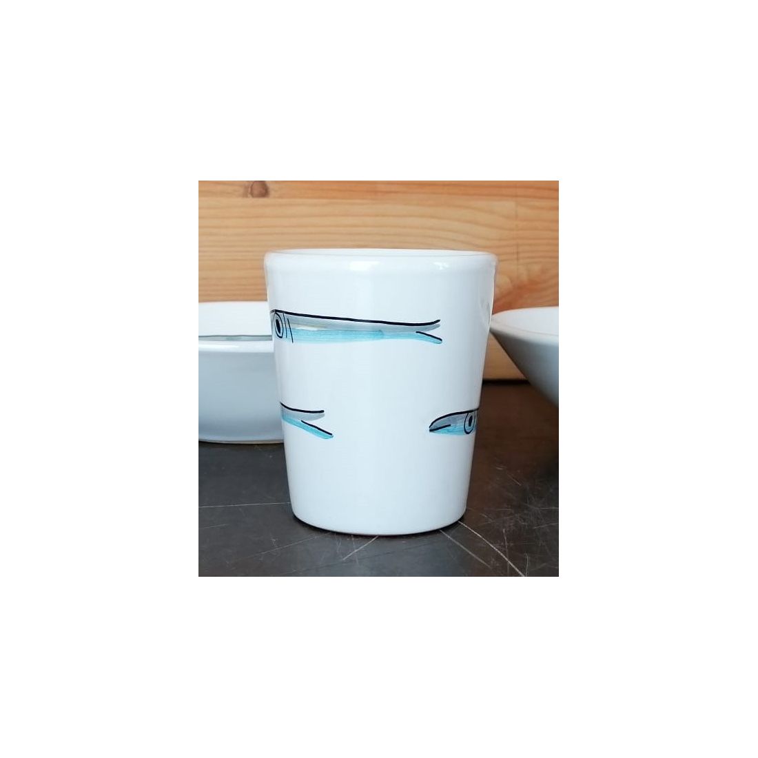 Línea de vidrio de sardinas, pintado a mano en ceramica vietrese.
