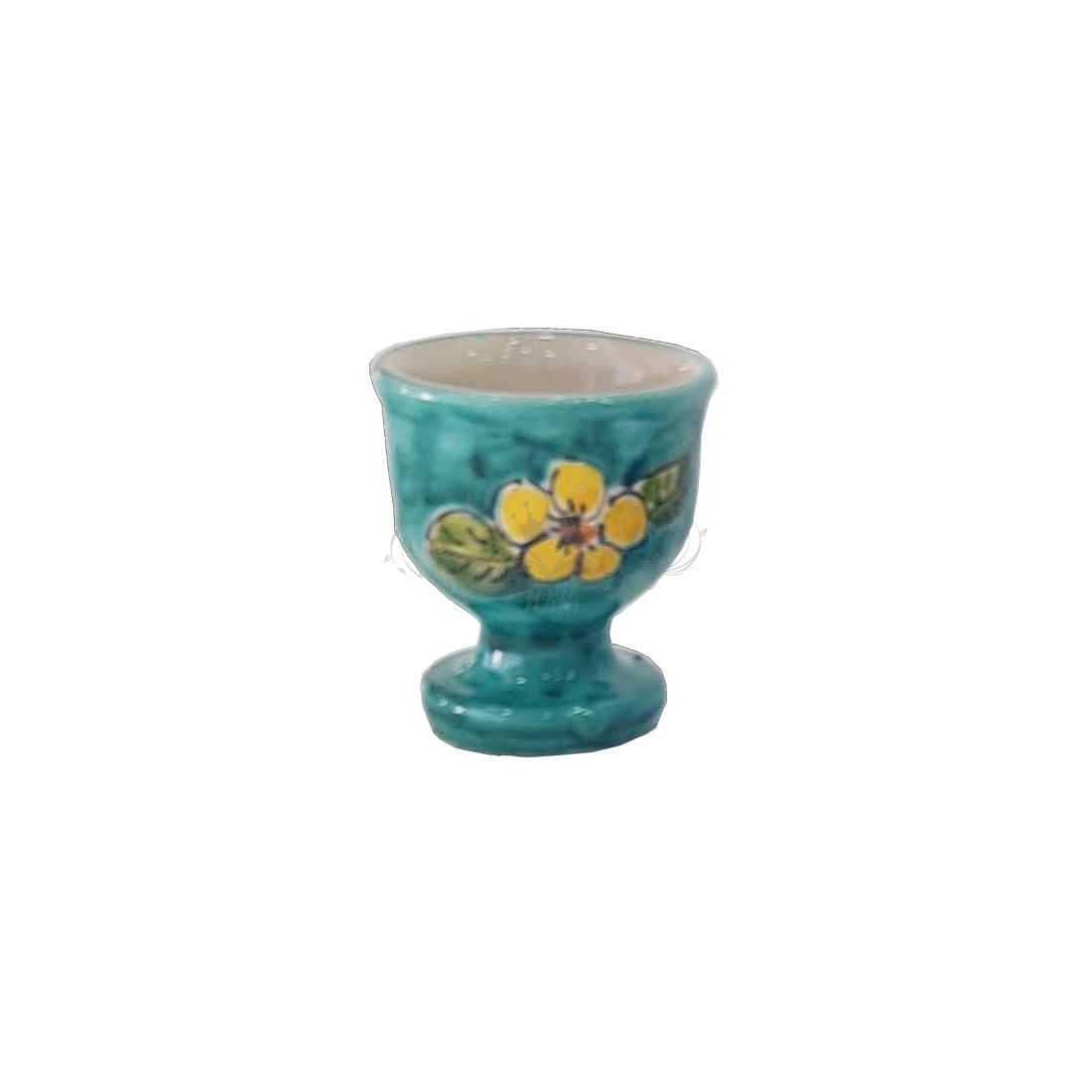 Portauovo linea animaletti Pesciolino fondo verde ramina - Ceramica di Vietri dipinta a...
