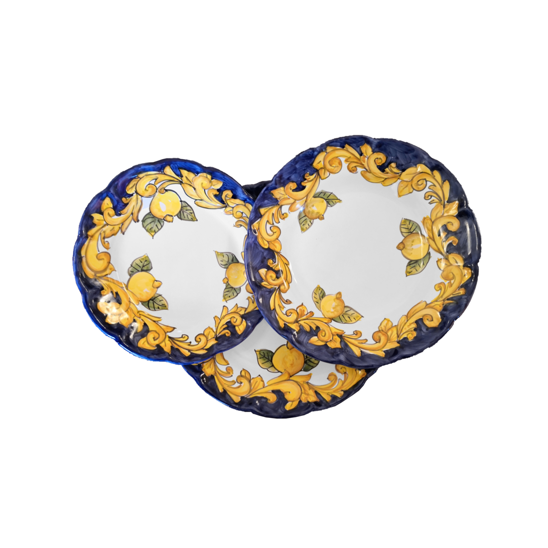 Linea limoni bordo blu. Ceramica di Vietri dipinta a mano. Bis Piano Fondo