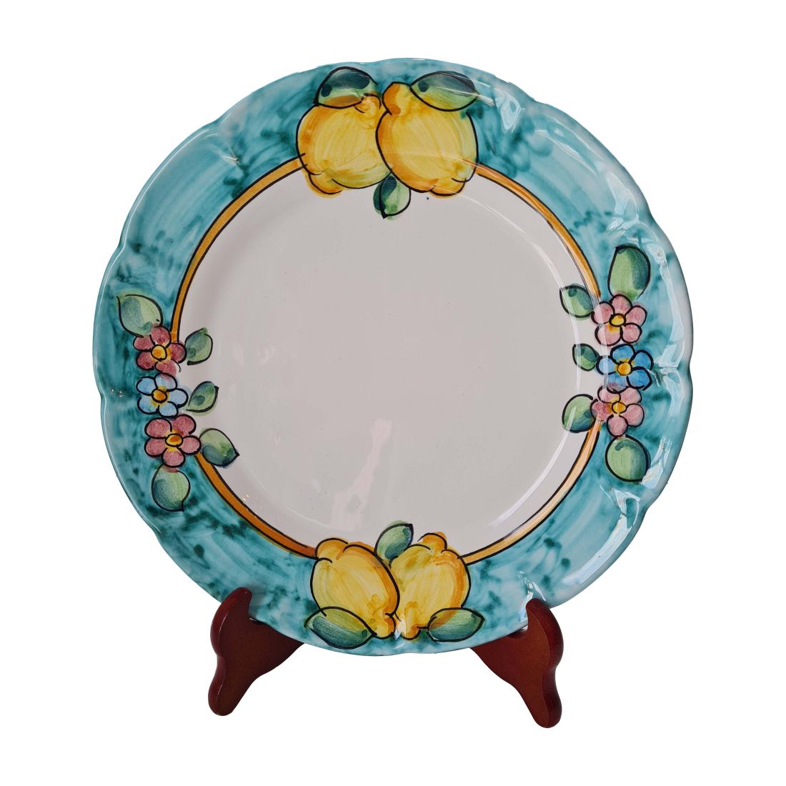 Assiette Festonnée ligne fleurs et citrons. Céramique de Vietri peinte à la main.