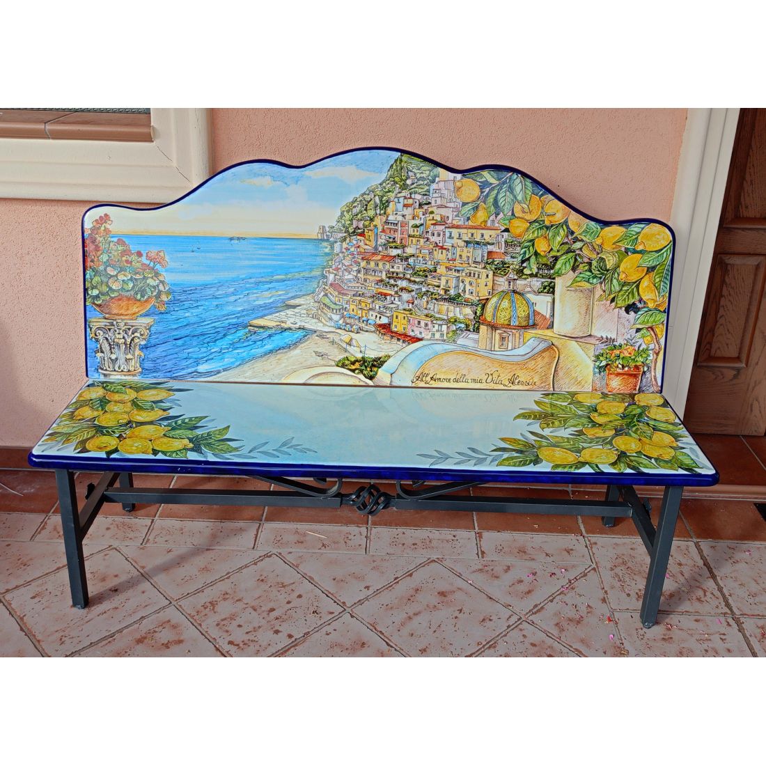 Banc en pierre de lave céramisée. Céramique Vietri peinte à la main.