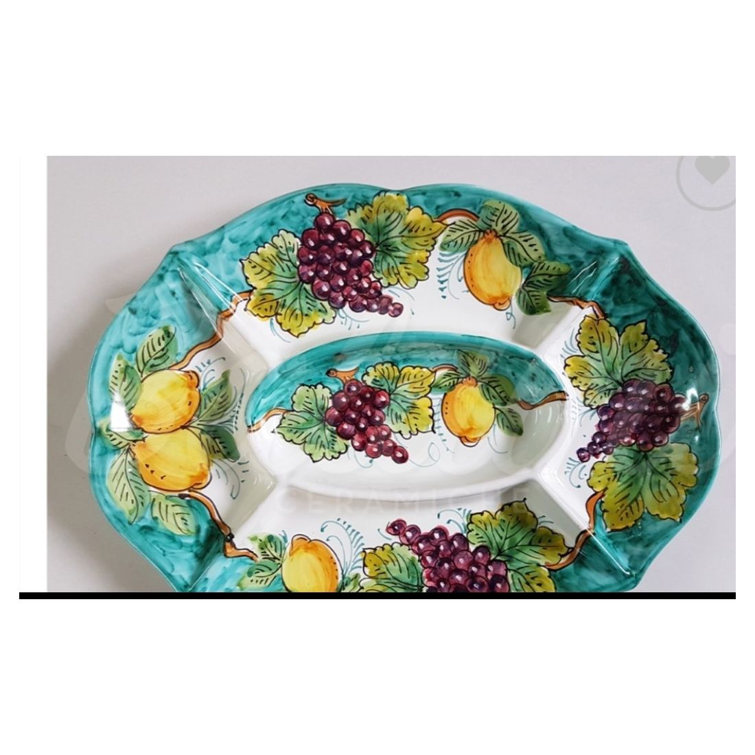 Antipastier. Dîner froid. 7 compartiments. Ligne Petits Fruits, bord vert. Céramique de Vietri peinte à la main.