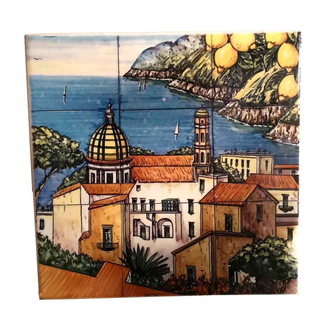 Pannello murale -Panorama- in ceramica vietrese dipinta a mano.