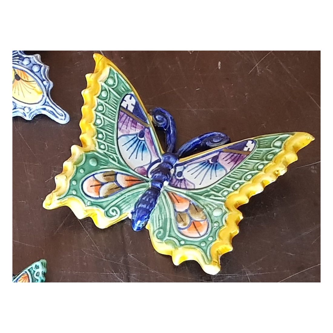 Farfalla colorata fondo verde ramina in Ceramica di vietri dipinta a mano. disponibili in diverse dimensioni