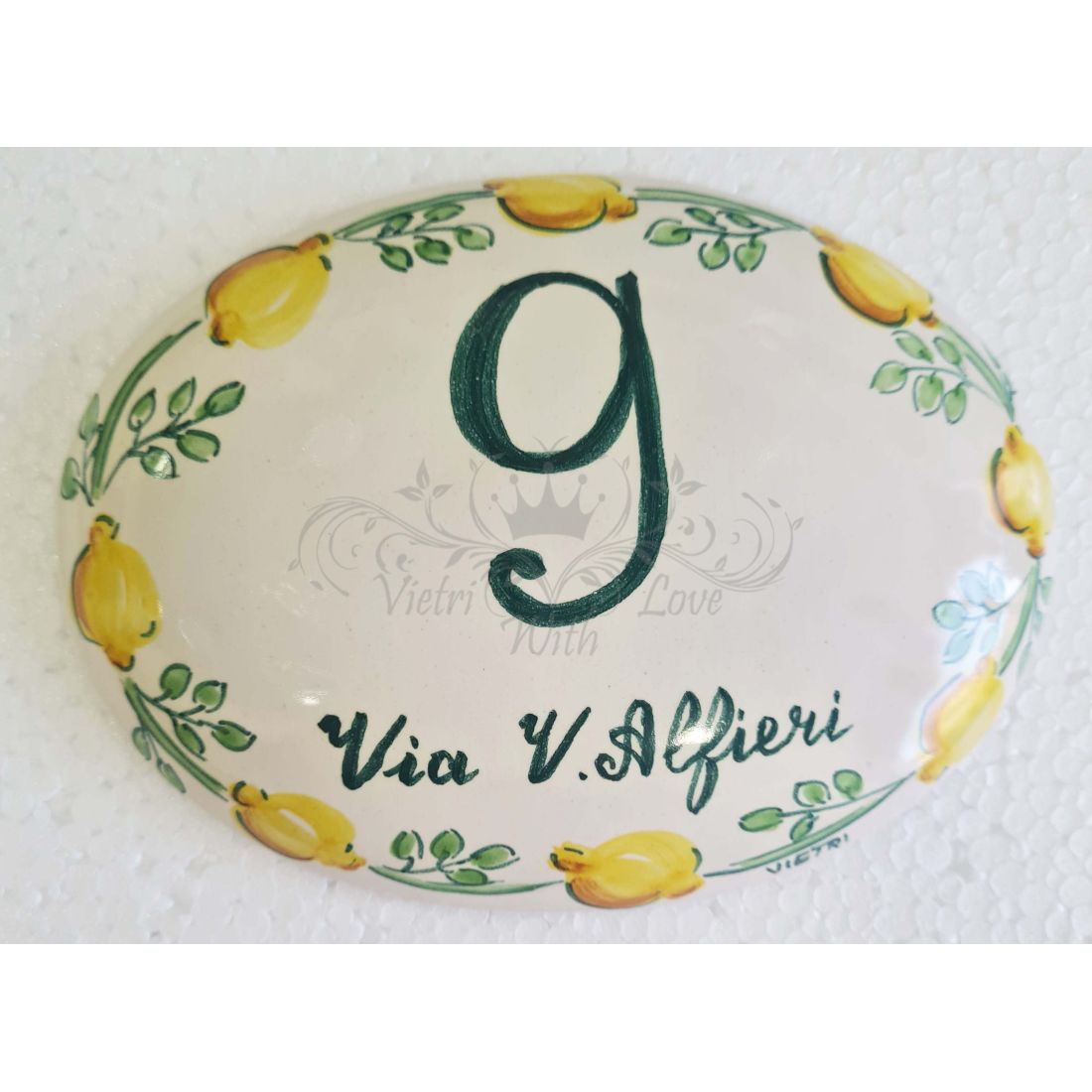 Plaque ovale personnalisable. Ligne Citrons. Céramique Vietri peinte à la main.