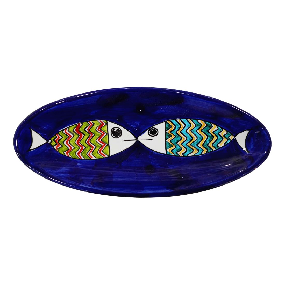 Assiette plateau à tasses ovale Ligne Poisson. Assiette de service en céramique Vietri.