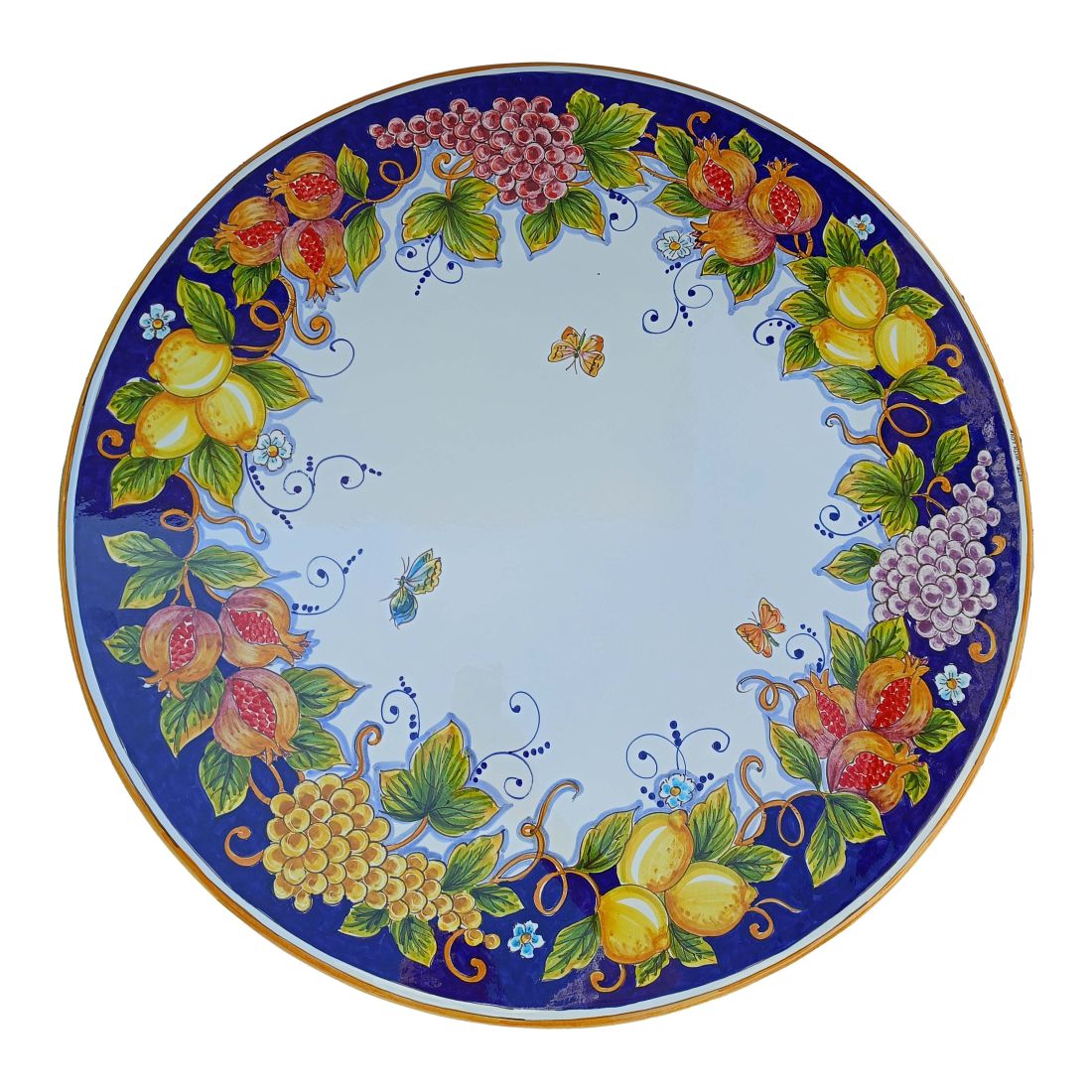 Table en pierre de lave céramisée. Raisins et agrumes peints à la main. Céramique Vietri