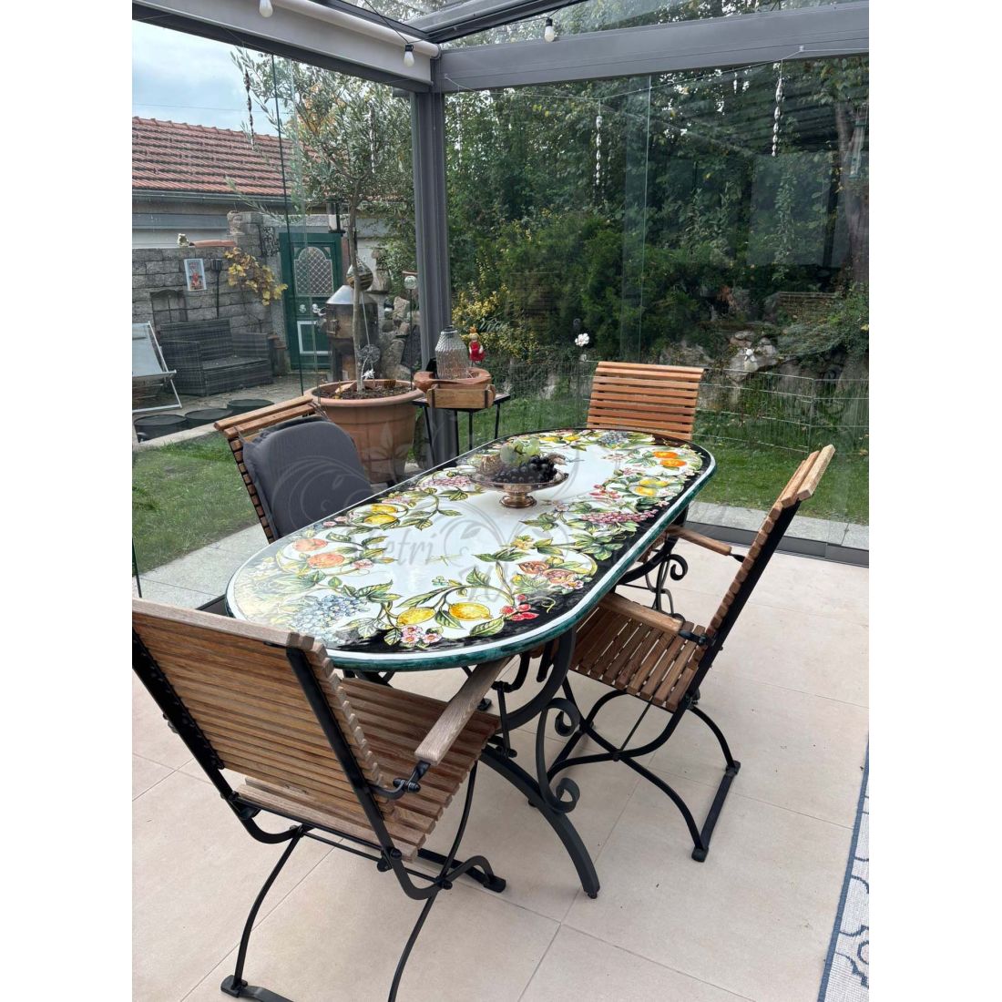 Table artisanale élégante et résistante réalisée en pierre de lave de l’Etna, émaillée et peinte à la main par des maîtres artisans avec les couleurs et la tradition de la Côte Amalfitaine.