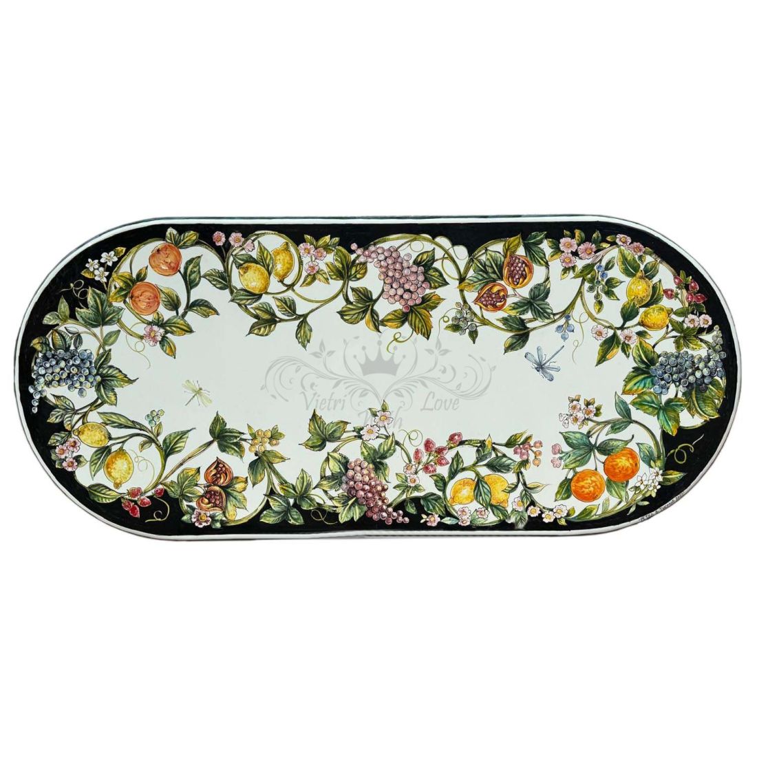 Table en pierre de lave émaillée. Rondò Amalfitaine. Peinte à la main. Céramique de Vietri.