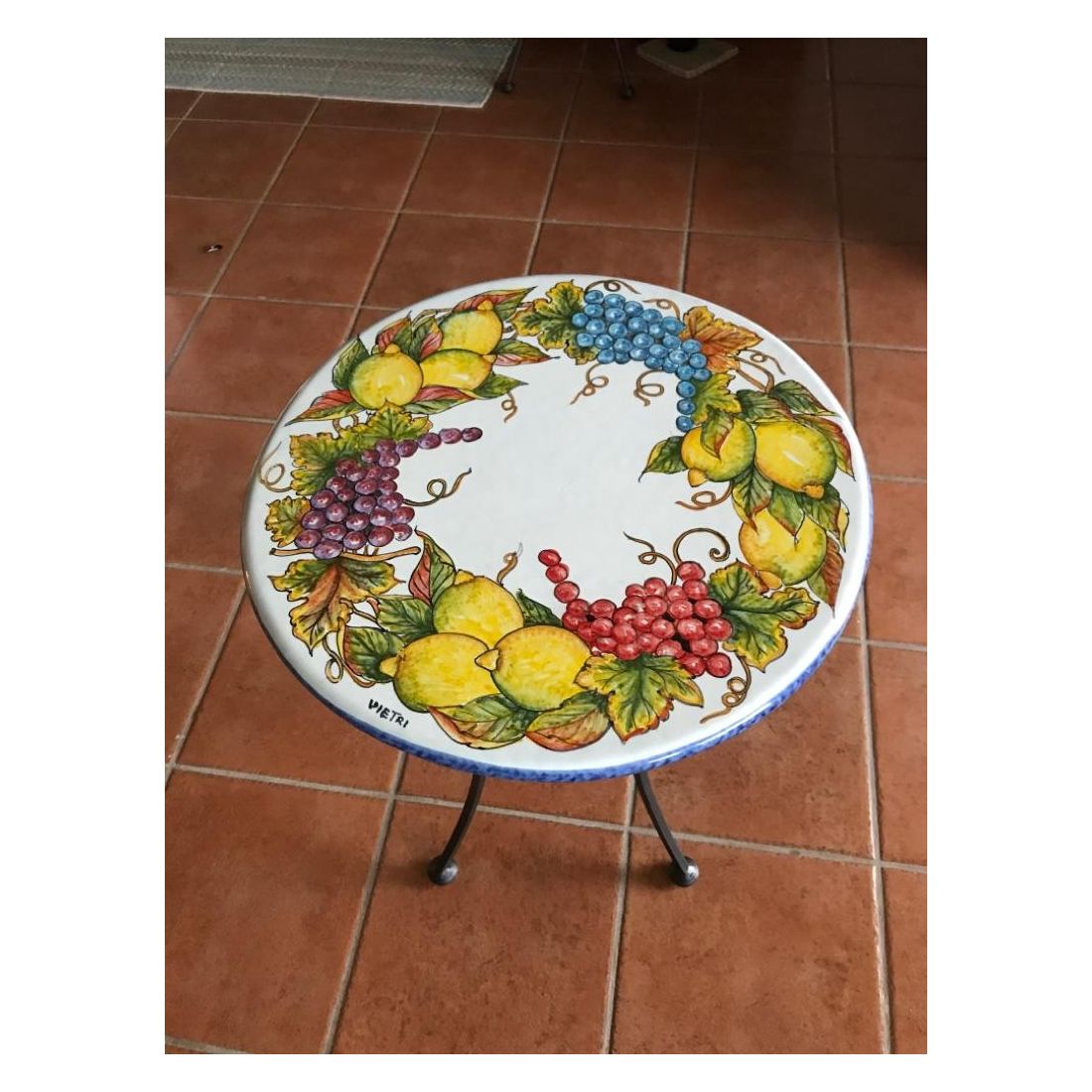 Table artisanale élégante et résistante réalisée en pierre de lave de l’Etna, émaillée et peinte à la main par des maîtres artisans avec les couleurs et la tradition de la Côte Amalfitaine.