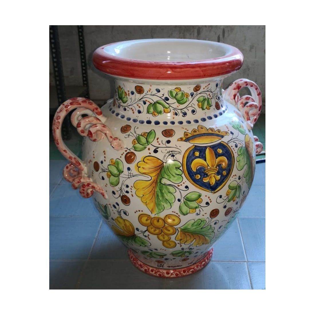 Orcio manici a serpente fondo bianco. Ceramica di Vietri dipinto a mano.