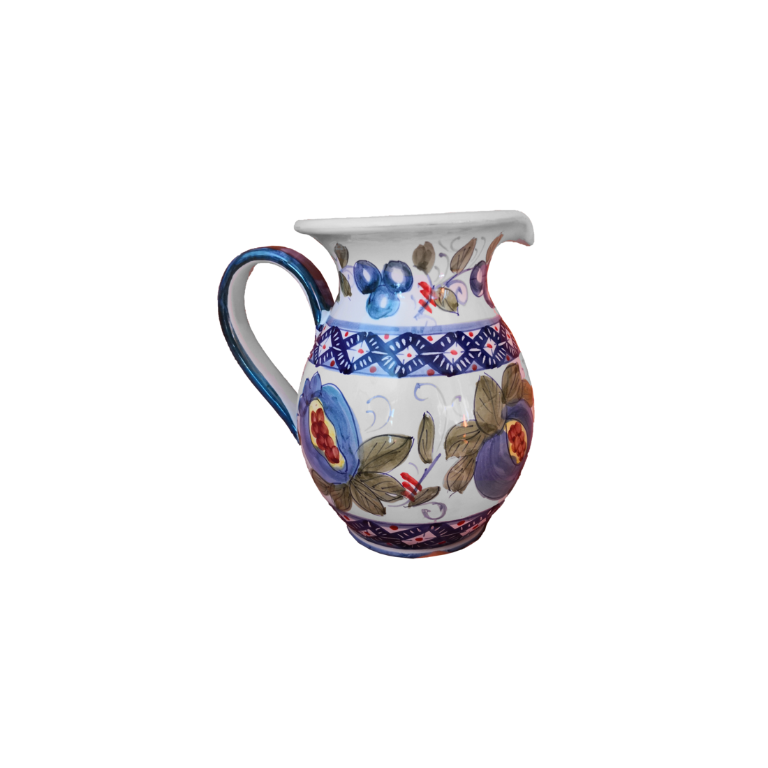 Brocca fondo bianco decoro melograni. Ceramica di Vietri dipinta a mano.