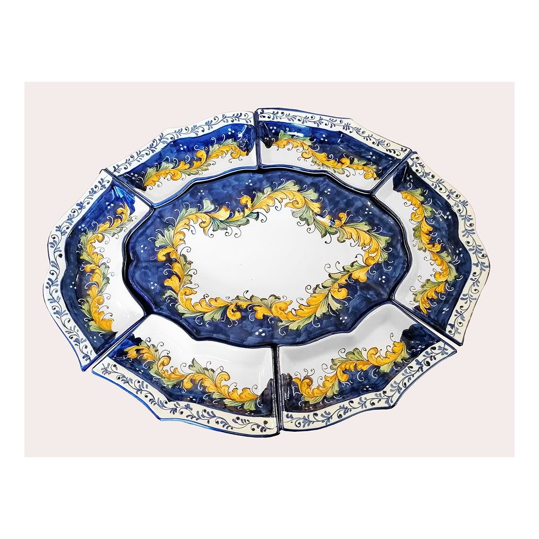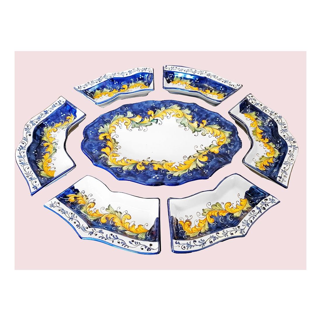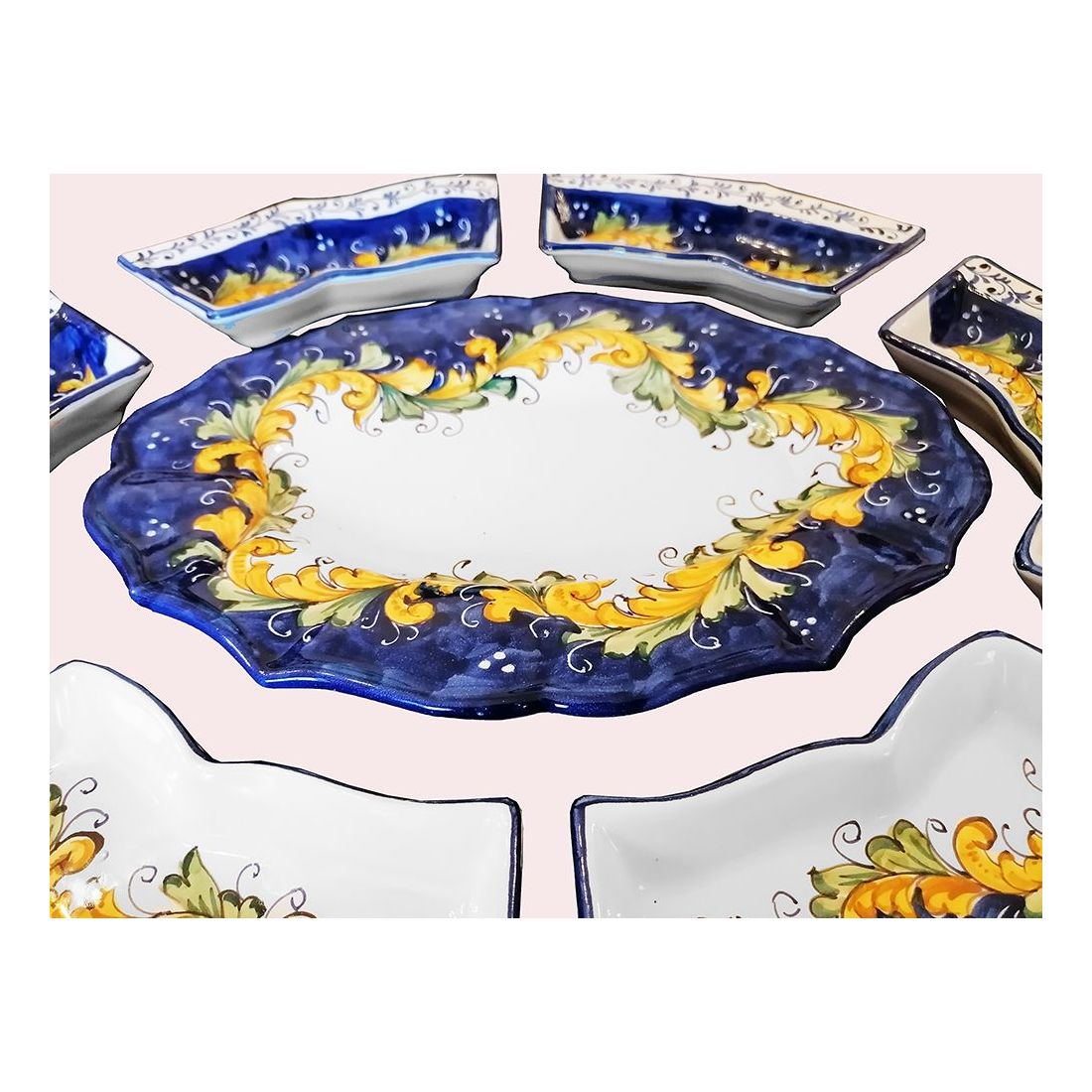Antipastiera. Cena Fredda. 7 pezzi. Linea Barocco. Ceramica di Vietri. Dipinta a mano