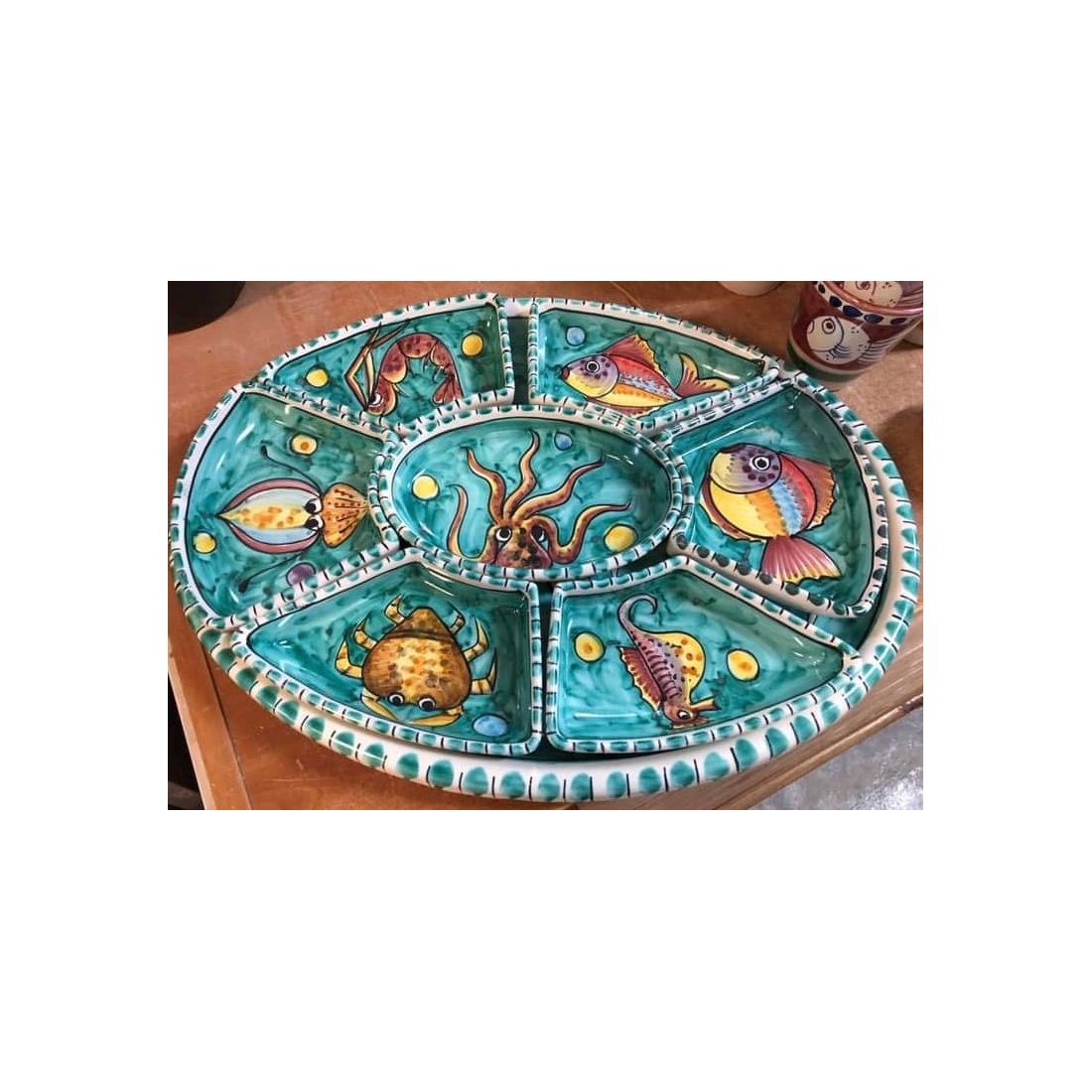 Antipastiera. Cena Fredda. 8 pezzi. Linea pesci. Ceramica di Vietri. Dipinta a mano