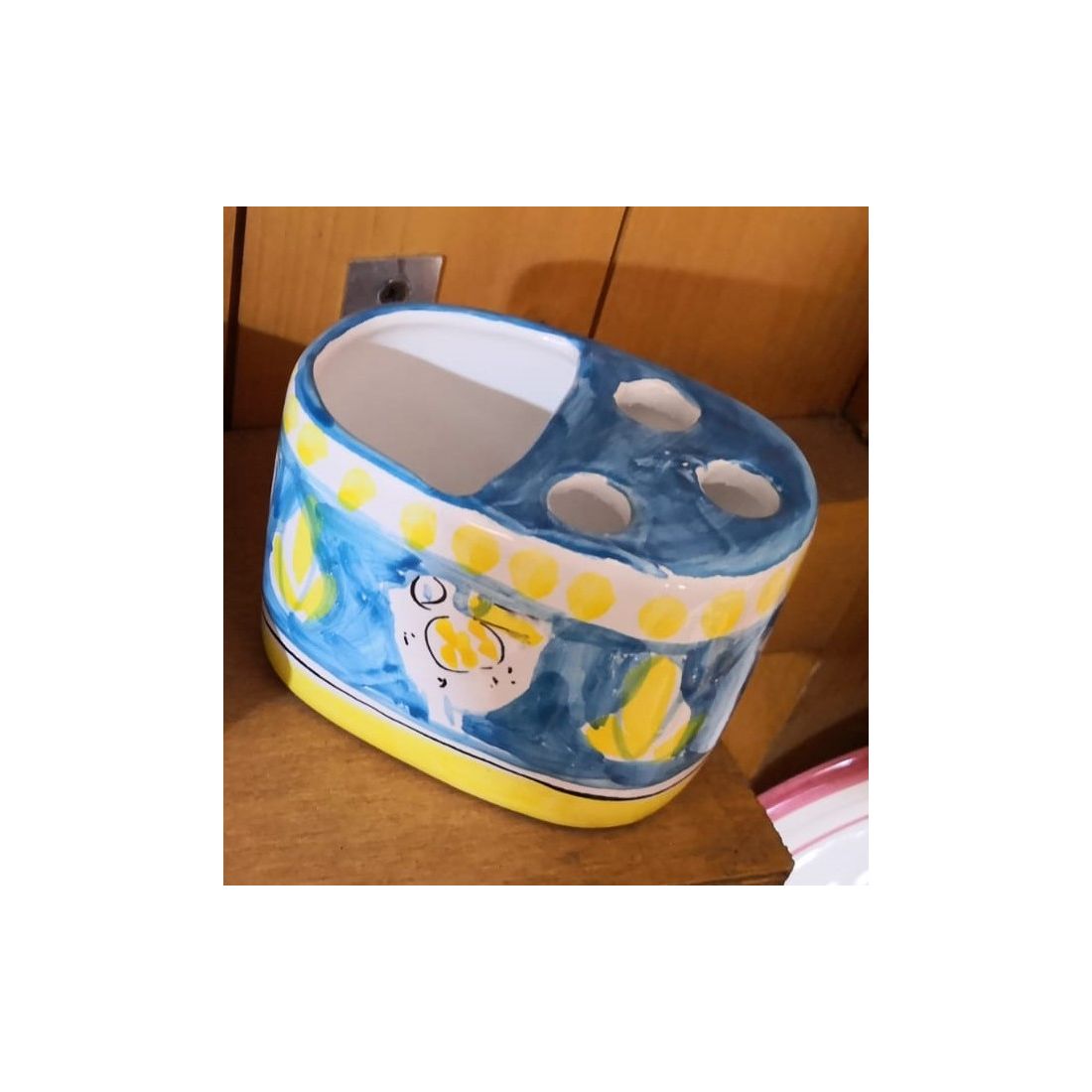Porta spazzolini linea animaletti fondo Blu. in Ceramica di Vietri dipinta a mano.