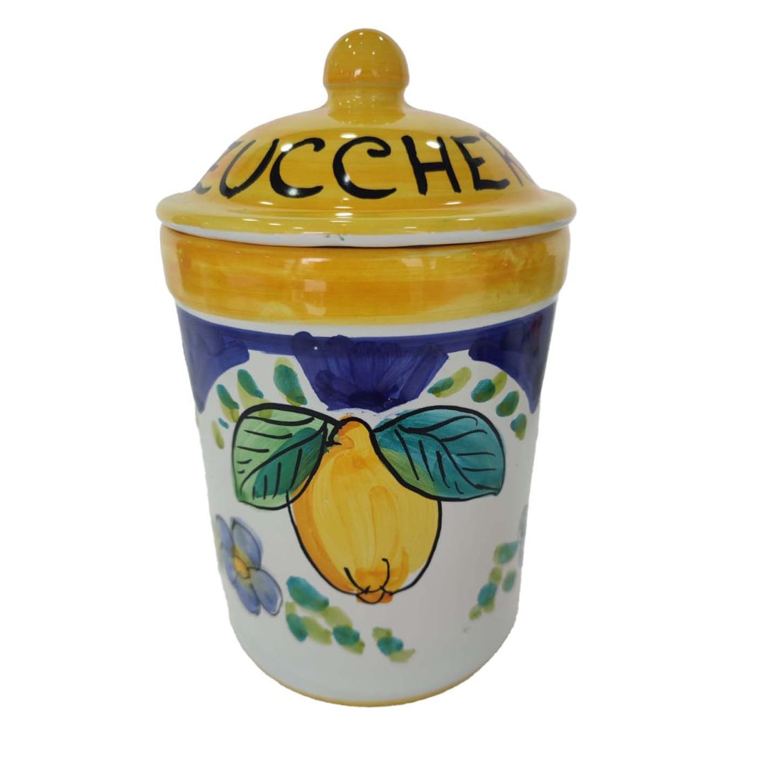 Barattolo Personalizzabile Porta Spezie linea Limoni e Fiori. Ceramica di Vietri dipinta a mano.