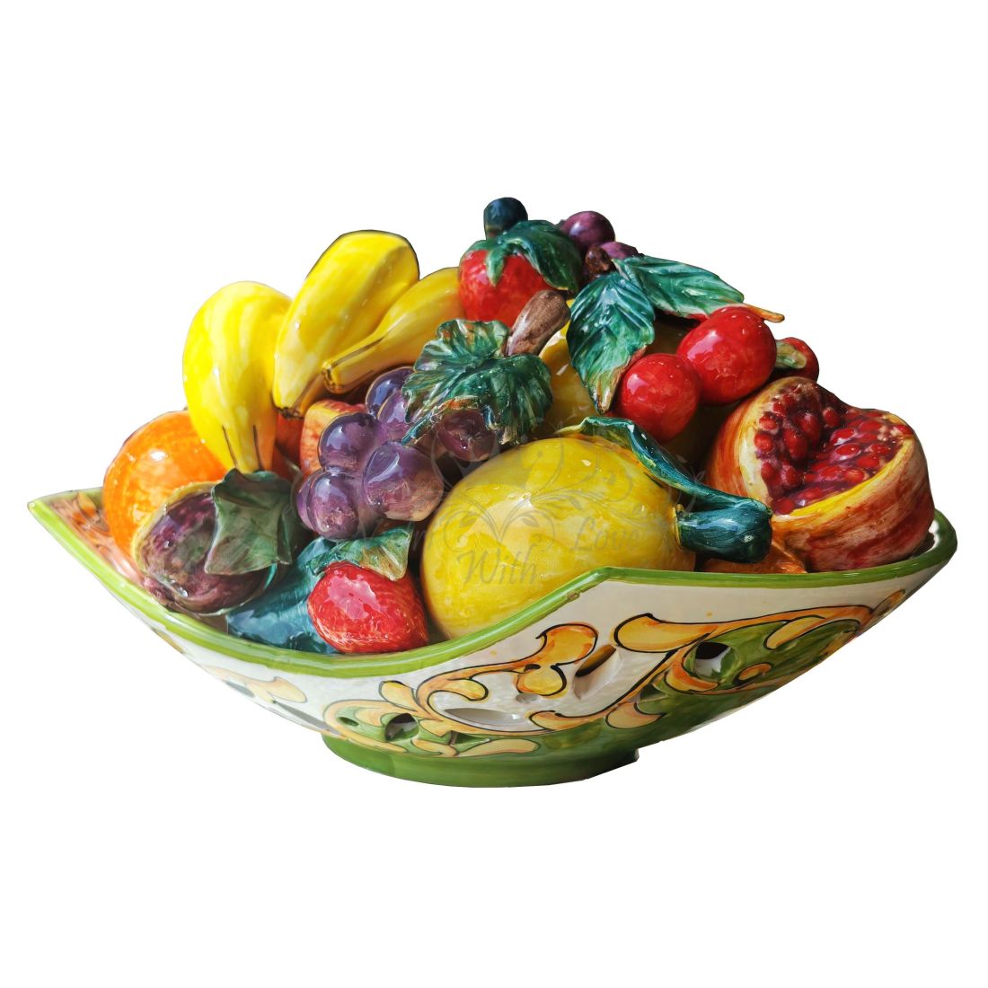 Cesto di frutta in ceramica. Ceramica vietrese dipinta a mano