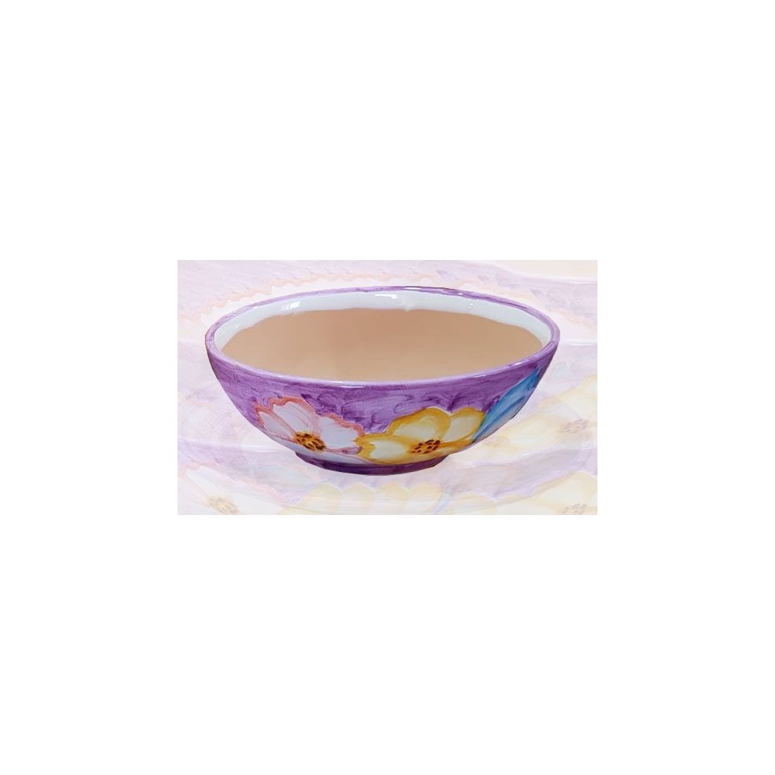 Vaso ciotola decoro Fiori Fondo Viola Ceramica di Vietri dipinto a mano.