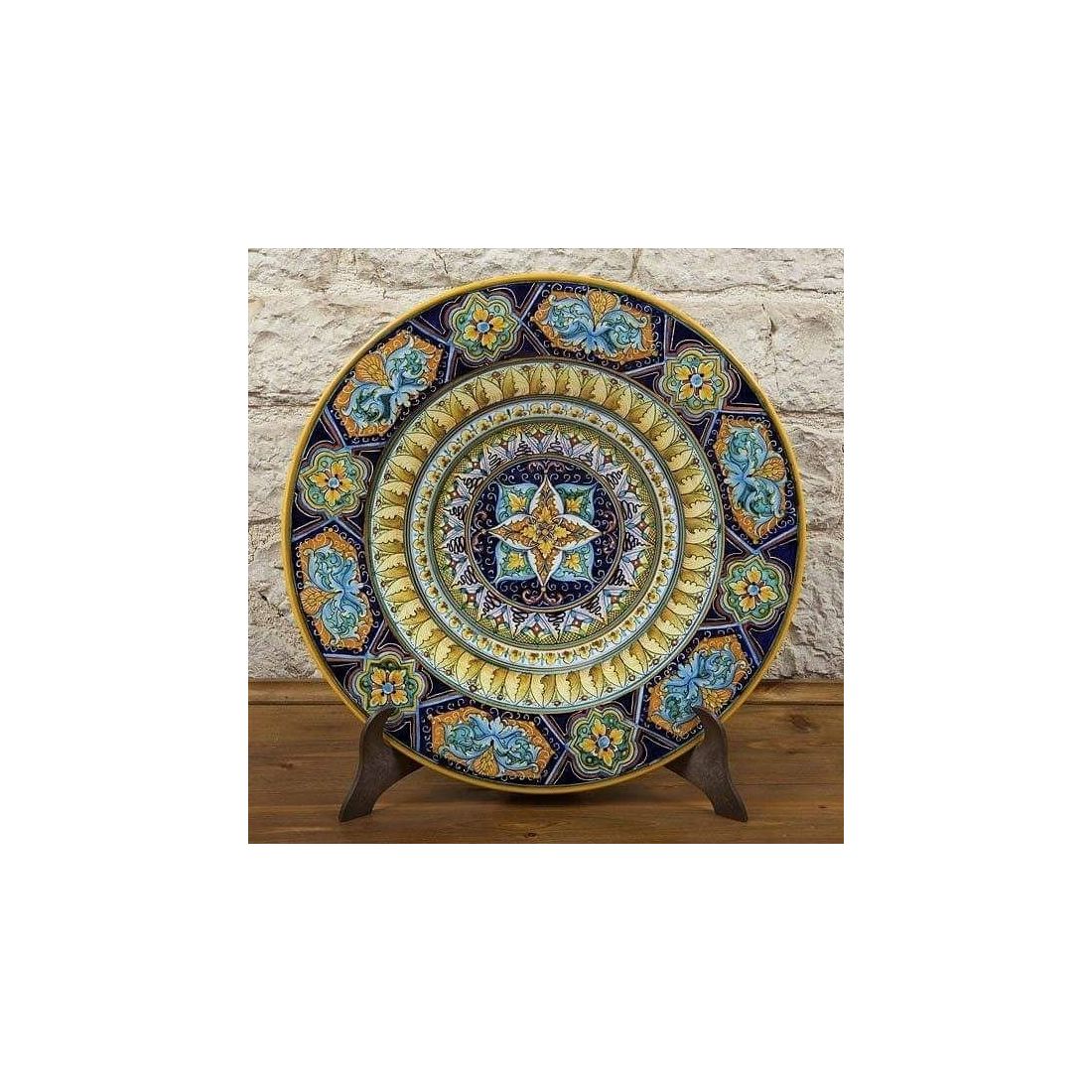 Scopri il fascino della ceramica vietrese dipinta a mano con questo elegante piatto murale artistico, realizzato artigianalmente a Vietri sul Mare.