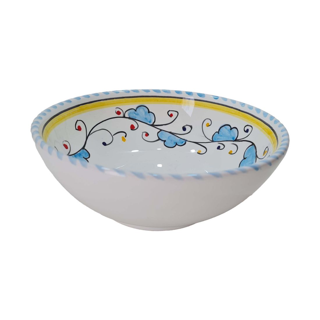 Allegra, versatile e interamente dipinta a mano, la nostra coppa fondina, è perfetta come insalatiera, per primi piatti o per servire con fantasia. Ogni pezzo decorato, rende la tua tavola originale.