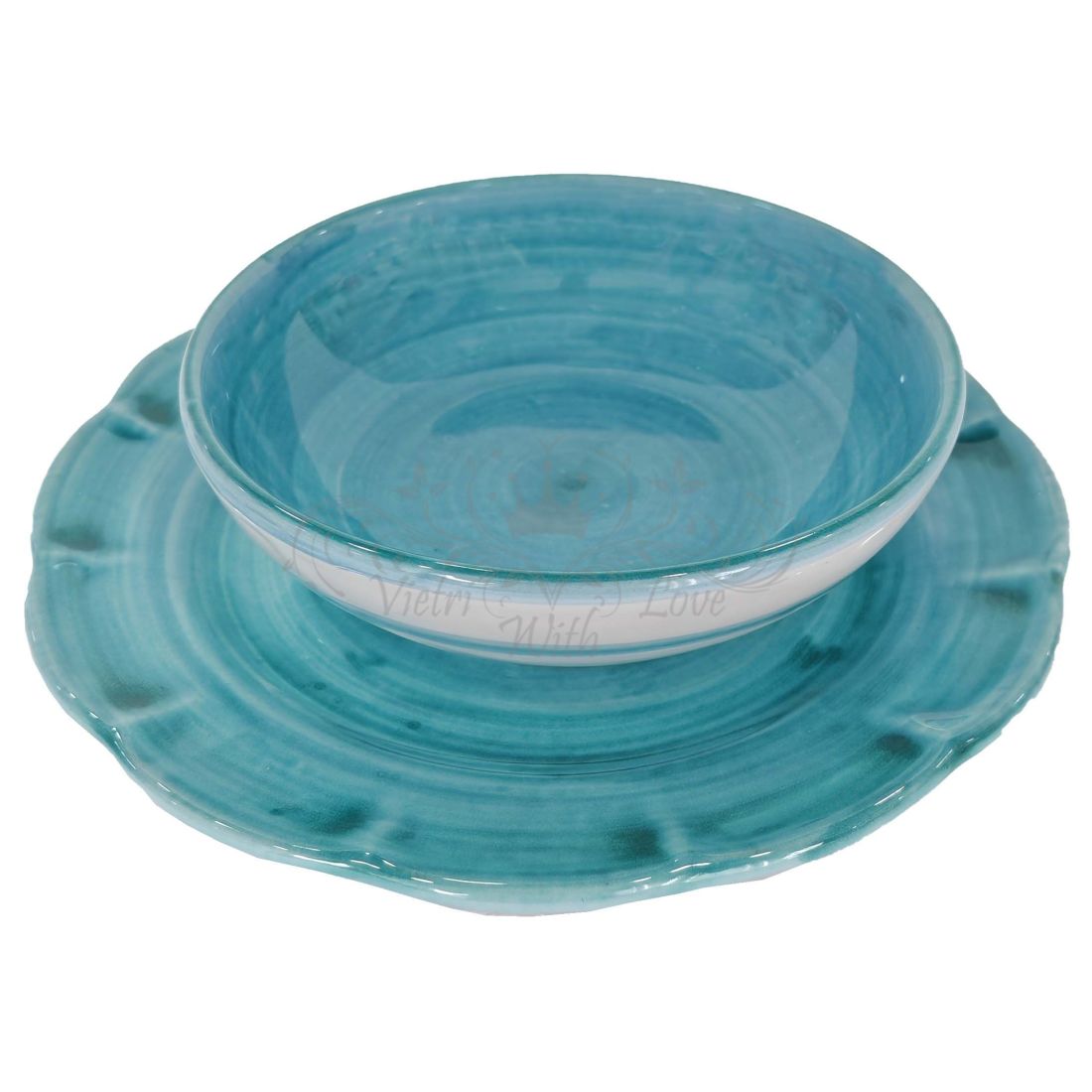 Piatto Linea pennellato. Dipinto a mano. Ceramica di Vietri. Bis ciotola e piatto piano