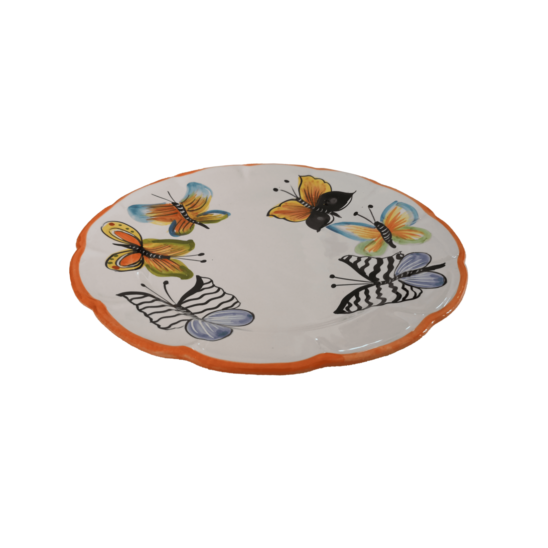 Piatto linea farfalle bordo arancione. Ceramica di Vietri - disponibile fondo, piano, frutta/dolce o sottopiatto.
