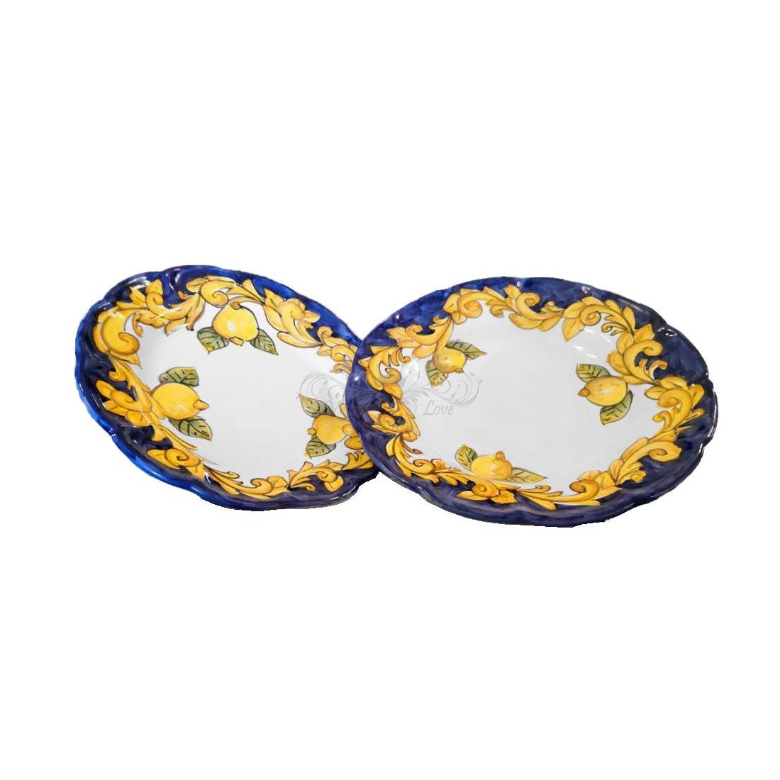 Piatto. Linea barocco e limoni. Dipinto a mano ceramica vietrese