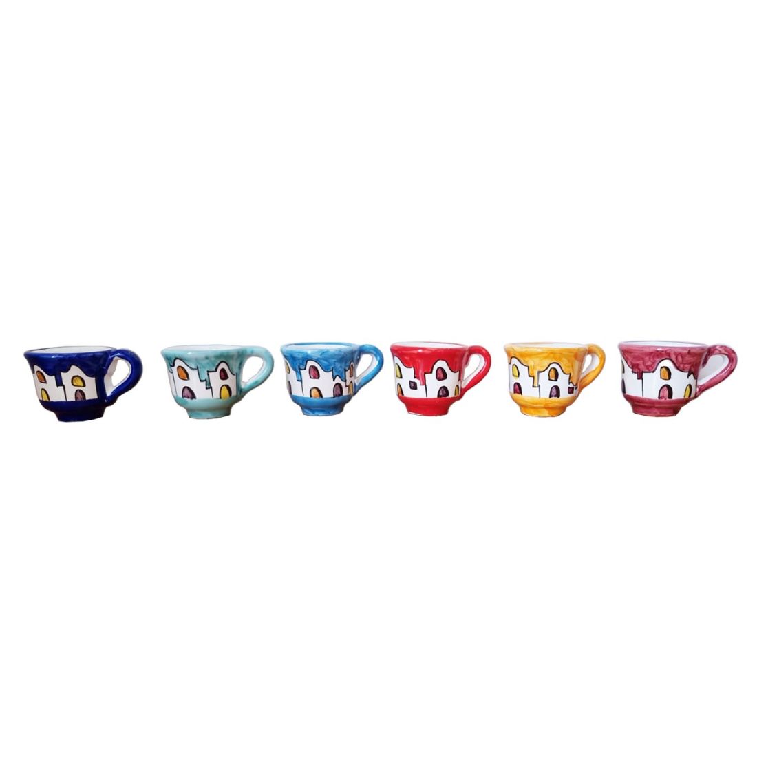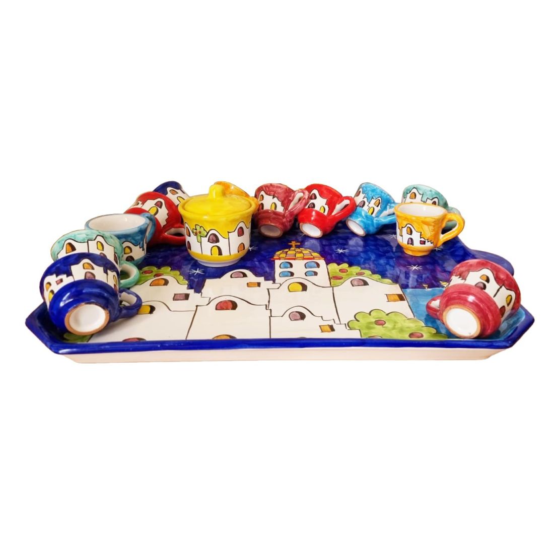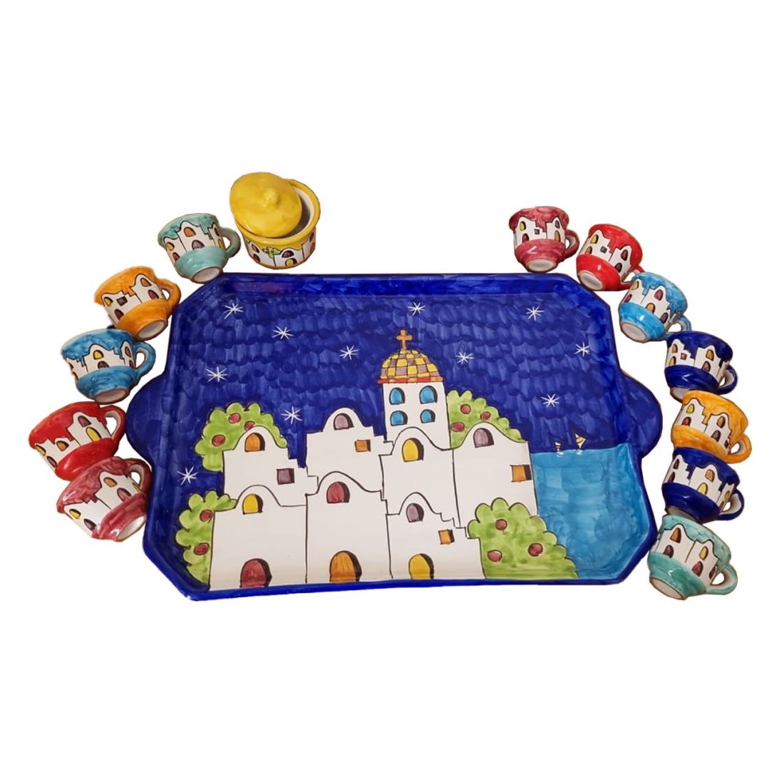 Vassoio con 12 tazzine e zuccheriera. Linea Casette. Ceramica di Vietri. Dipinto a mano.
