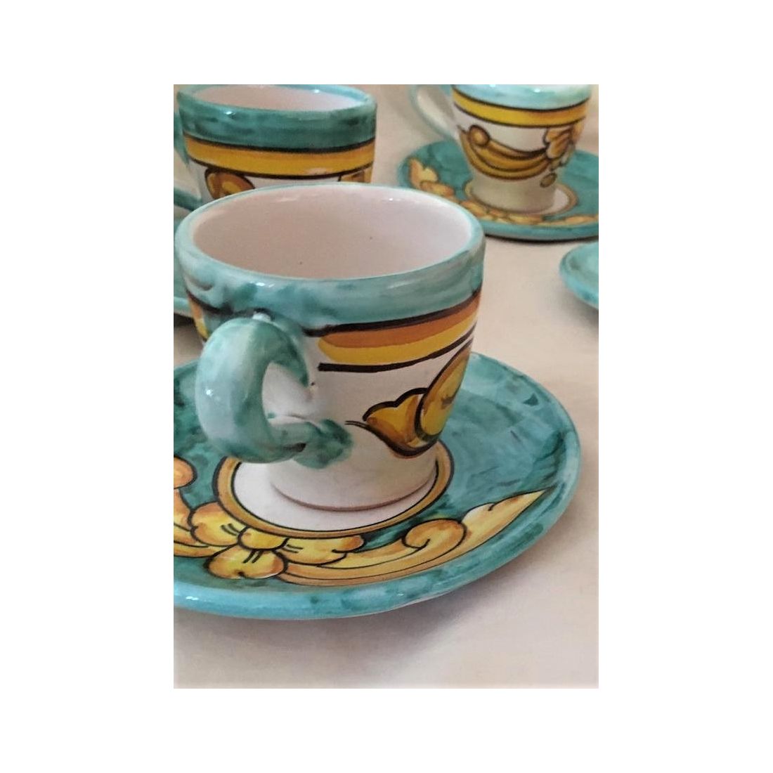 Tazzina con piattino in ceramica di Vietri, dipinta a mano, eleganza e arte artigiana italiana.