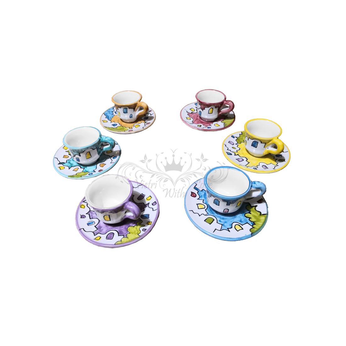 Set tazzina e piattino. Linea Casette di Positano. Ceramica di Vietri. Dipinto a mano