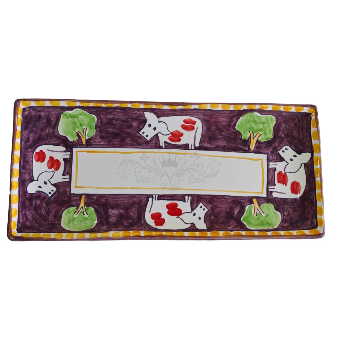 Vassoio burro/Formaggi Linea Animaletti. Ceramica di Vietri dipinta a mano.